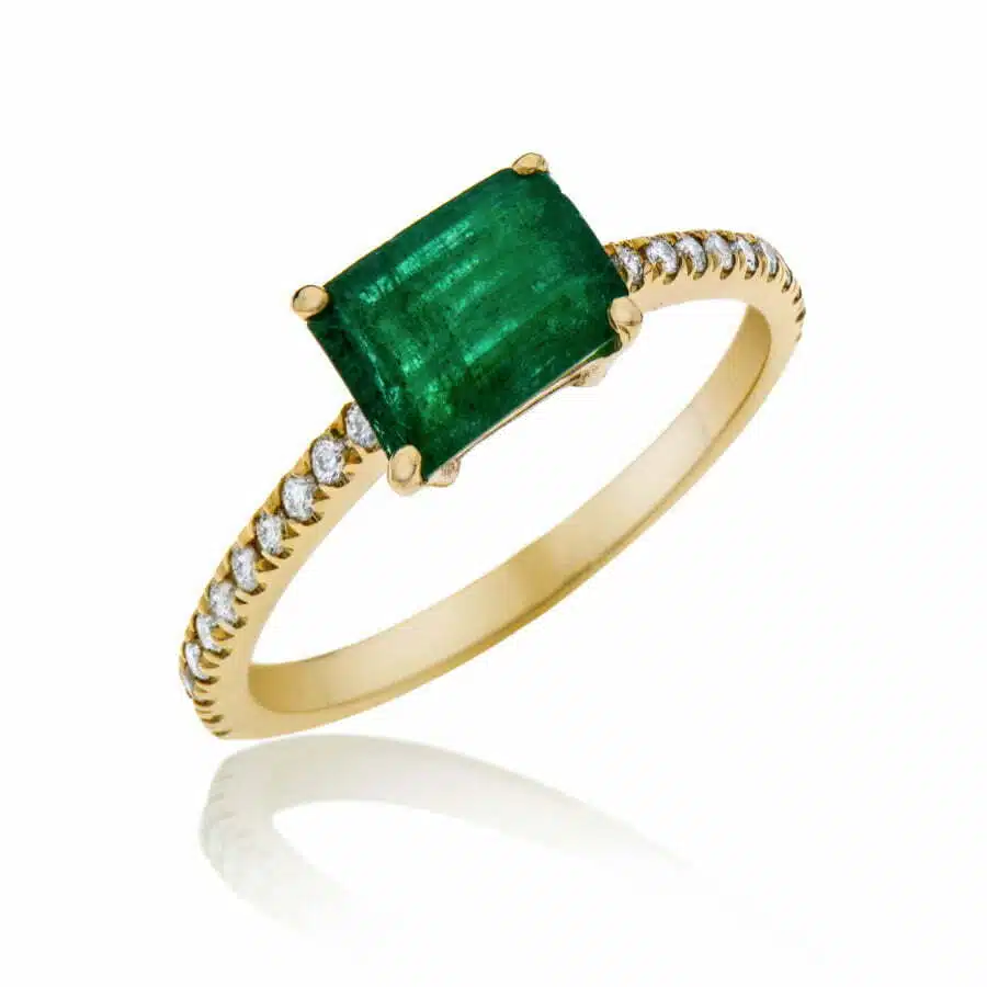 טבעת אבן אמרלד ויהלומים, 14K זהב, משובצת 0.08 CT יהלומים, דגם RD3618EM