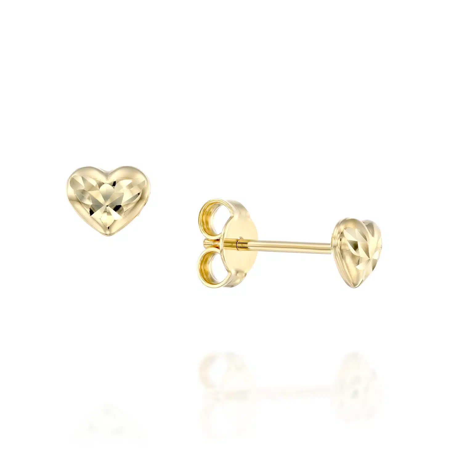 עגיל צמוד בצורת לב עשוי זהב 14K, סוגר פרפר 14 קראט, במשקל 0.80 גרם