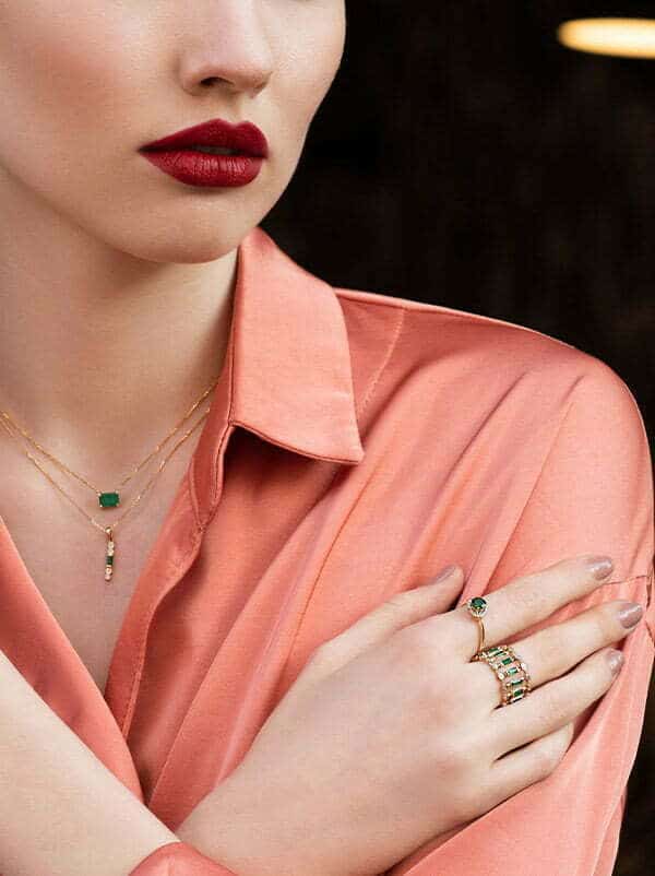תליון אבן אמרלד ויהלומים, זהב 14K, דגם PD3658