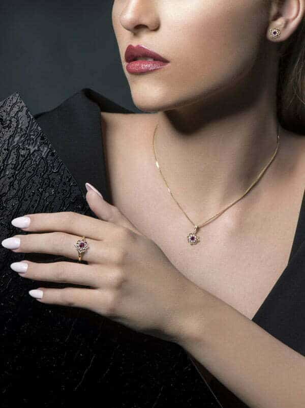 תליון אבן רובי ויהלומים בצורת פרח, 14K זהב, משובץ 0.14 קראט יהלומים, דגם PD3306RU