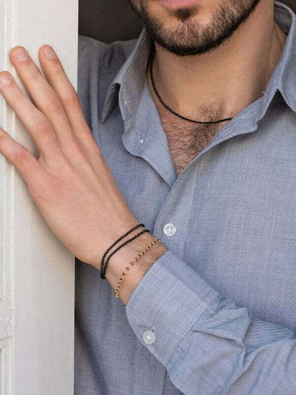 צמיד טניס לגבר בשילוב זרקונים שחורים, 14K זהב, דגם BZ2351915