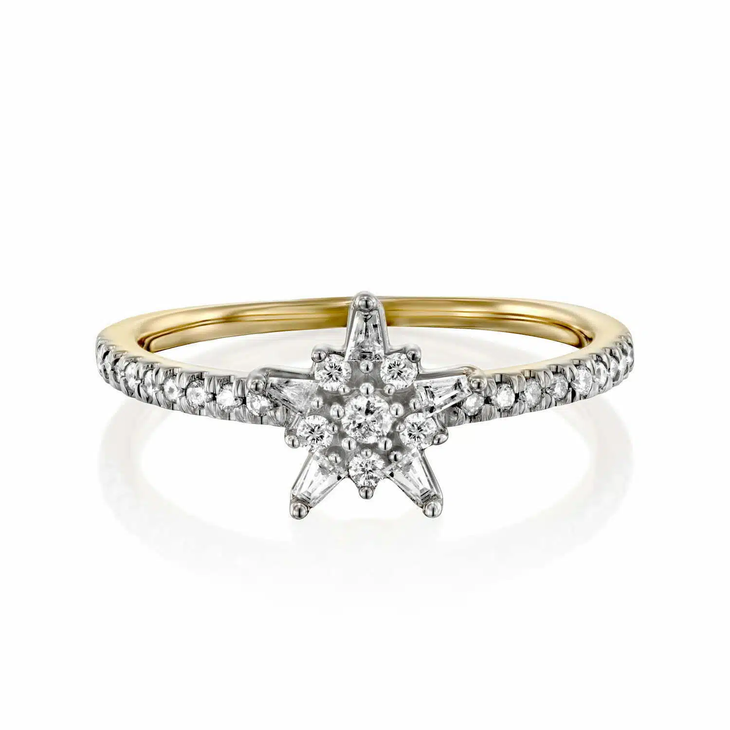עגילי כוכב יהלומים, זהב 14K, בשיבוץ 0.24 קראט יהלומים